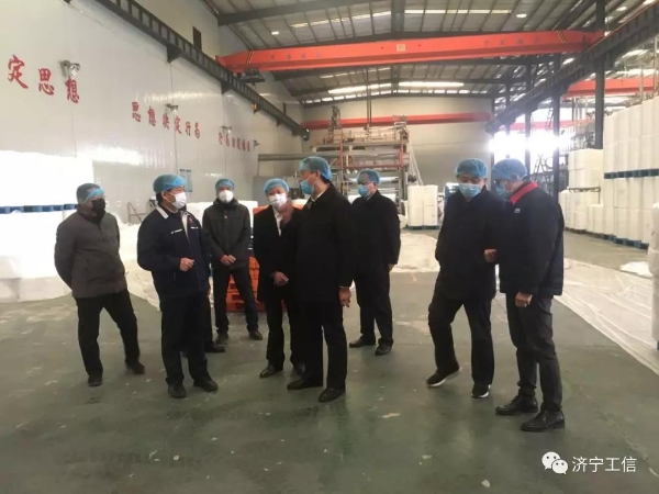 2月2日上午,邹城市工信局到部分复工复产企业督导疫情防控工作,了解企业职工防护情况、防疫医疗物资、生活物资生产和储备情况。先后来到呱呱鸭制品公司、艾孚特科技公司、国瑞面业公司、星地新材料公司、盐业公司等企业,实地查看企业防疫措施落实、防疫物资生产等情况,详细了解消毒液、防护用品、面粉、食盐人民生活必需品等产能及库存情况。