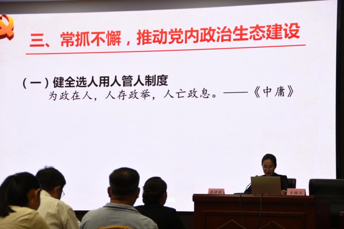 郑丽媛带来的微党课是《牢记初心使命、全面从严治党》。她讲述了深刻认识全面从严治党的重要意义,共产党人应坚持自我革命、保持自我净化,要做到常抓不懈,保持党内政治生态建设。
