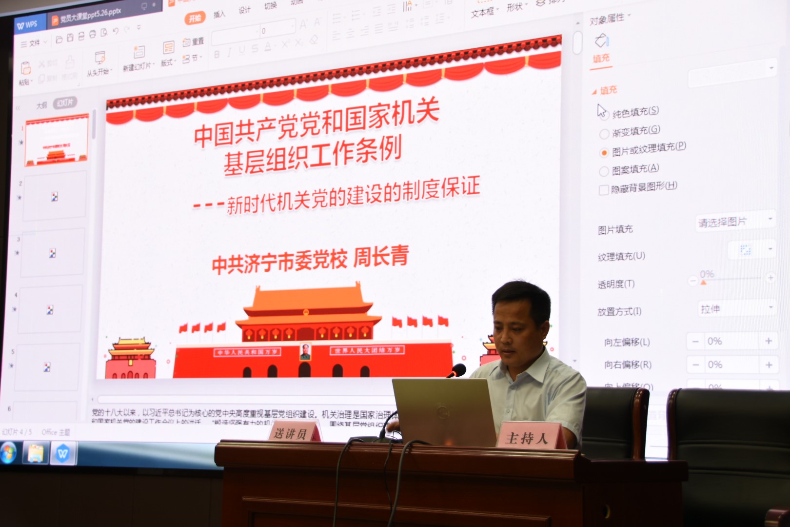 5月26日,市工信局第四期党员大课堂开课,本期党员大课堂结合市委市直机关工委“微党课”巡讲活动共同开展,邀请济宁干部政德教育学院郑丽媛同志、市委党校周长青同志、市城市管理局贾磊同志、市委统战部付文彤同志四位巡讲员讲授“微党课”,市委市直机关工委宣传部副部长李花卉参加活动,市工信局机关党委专职副书记丁玉林主持。