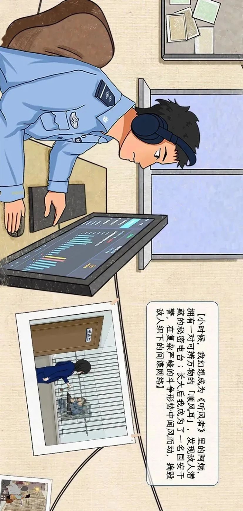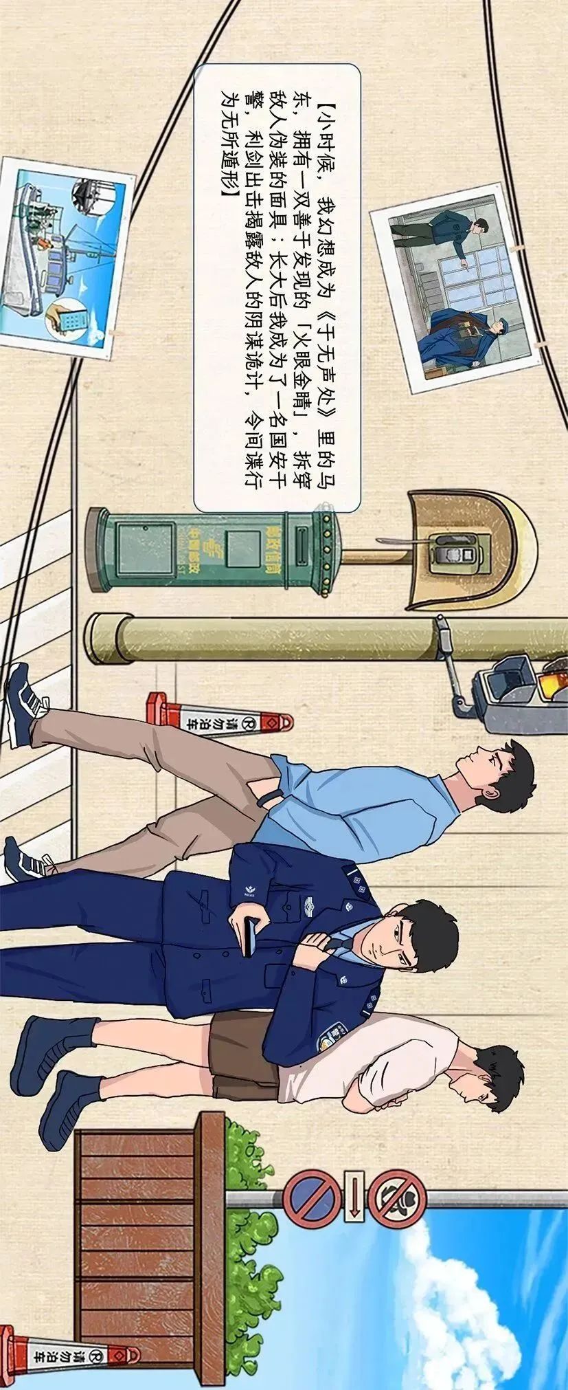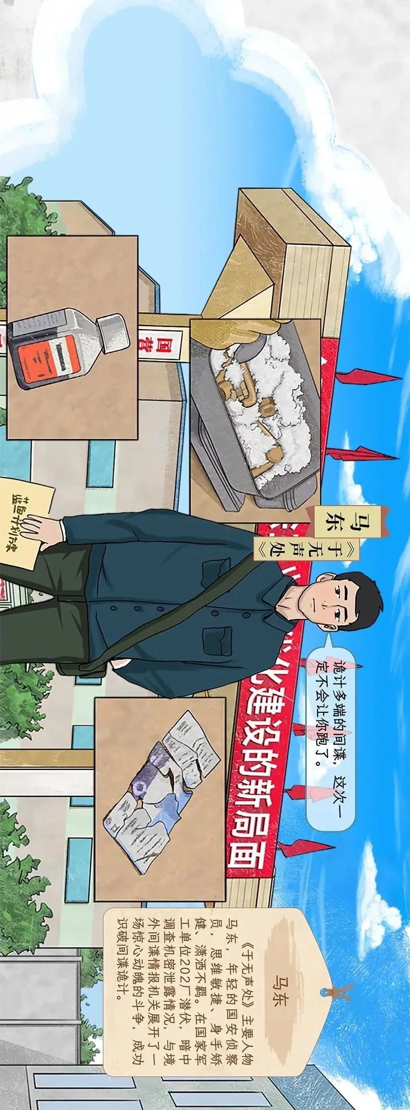 小时候,你是否也写过同样一篇作文:《长大后,我想成为……》。那时,你对未来的憧憬和梦想,是儿时最美好的记忆,如童话般令人向往。今天,《国安童话》来与你会面,把那些陪伴过我们的隐蔽战线影视故事绘集成画,与你一同跟随“听风者”阿炳、“看风者”黄依依、“侦察员”马东和国安青年干警,了解国家安全机关神秘神奇神圣的光荣事业。